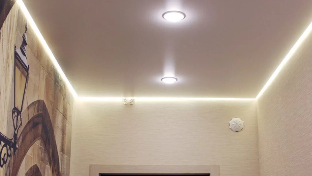 - Estructuras altísimas. El techo tensado parece flotar sobre la habitación. Es esta opción la que se considera más relevante en este momento. Este efecto se crea gracias a una iluminación especial, que se lleva a cabo a lo largo de todo el perímetro de la habitación.