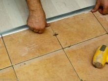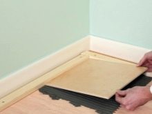 Es extremadamente difícil colocar baldosas sobre tablas de madera. Aquí se desmontan los rodapiés y se desmonta el piso viejo con la ayuda de una clavadora o destornillador.