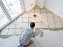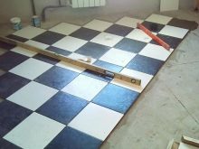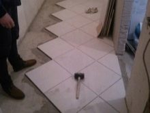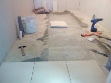 El piso está sujeto a una regla niveladora. Pero esta es una regla opcional. El hecho es que las baldosas se colocan sobre un mortero de cemento y arena, que, a su vez, se colocará incluso sobre un piso de concreto rugoso.