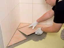 Disposición de ángulos rectos: por regla general, no hay más de 4, pero debido a las peculiaridades, por ejemplo, con particiones adicionales, se forman puntos de esquina adicionales, compruébelos con un cuadrado. La más mínima distorsión en algún lugar en el medio de la mampostería (la entrada de partículas y objetos extraños) conducirá a la pérdida de la rectangularidad general en las esquinas principales. No use elementos de baldosas defectuosas y cruces espaciadores hechos en violación de la tecnología. Si se pasa por alto la violación y la mampostería está llegando a su fin, y las filas anteriores han ganado resistencia a la carga, entonces la muestra problemática se corta con una amoladora a la condición deseada.
