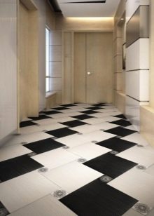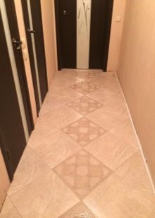 Al colocar baldosas de un extremo a otro, se requieren las primeras filas en los bordes de las paredes. Si el ancho del pasillo, por ejemplo, es de 3 m, y la longitud es de 4, entonces no será difícil colocar cuadrados de medio metro. En realidad, las dimensiones del sitio diseñado se toman un par de centímetros más. Si es necesario, las paredes al nivel de las baldosas se recortan a la condición deseada. Considere las dimensiones del pasillo antes de comprar gres porcelánico: 3 m - de ancho - se dividen por 30, 50 o 60 cm. De largo 4 m - por 25, 40, 50 cm al elegir una baldosa cuadrada o rectangular.