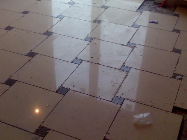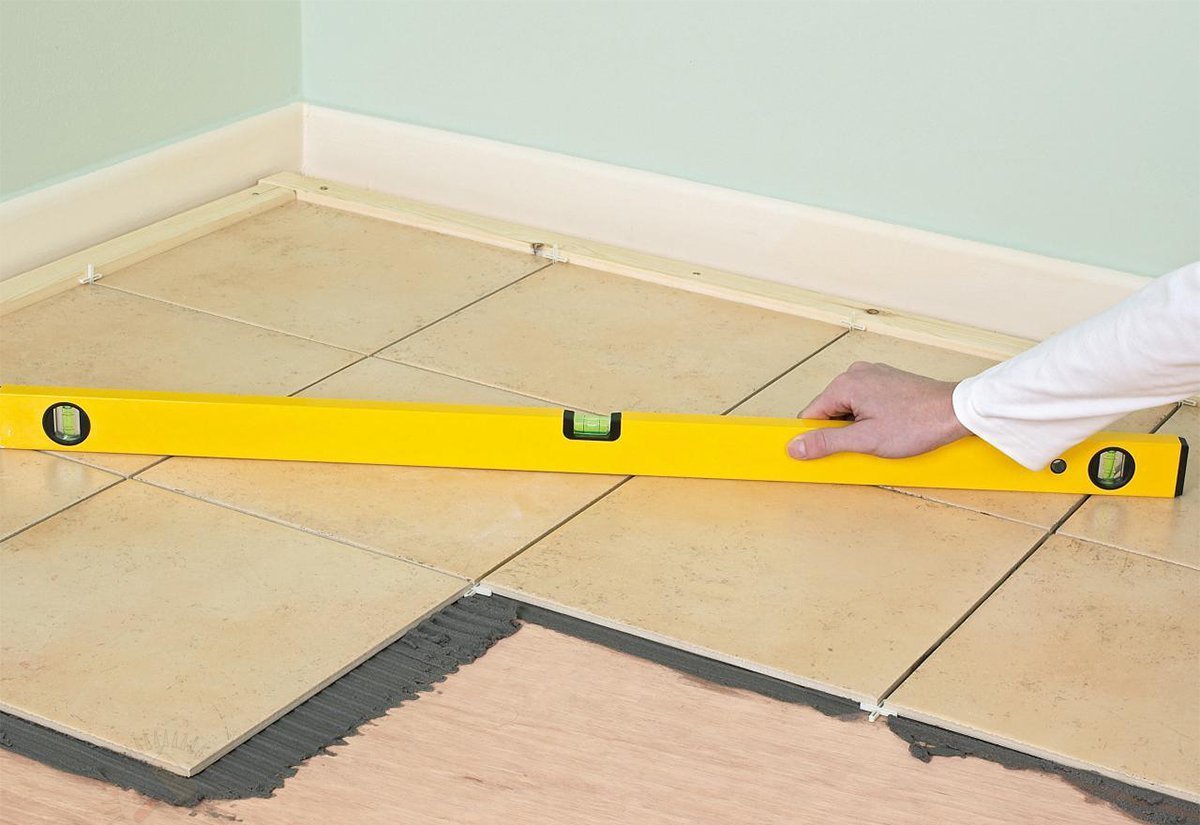 Al aplicar sobre una capa de solución de construcción, verifique cada instancia colocada con un indicador de nivel. Usa tu puño o un mazo de goma para golpearlo si es necesario.