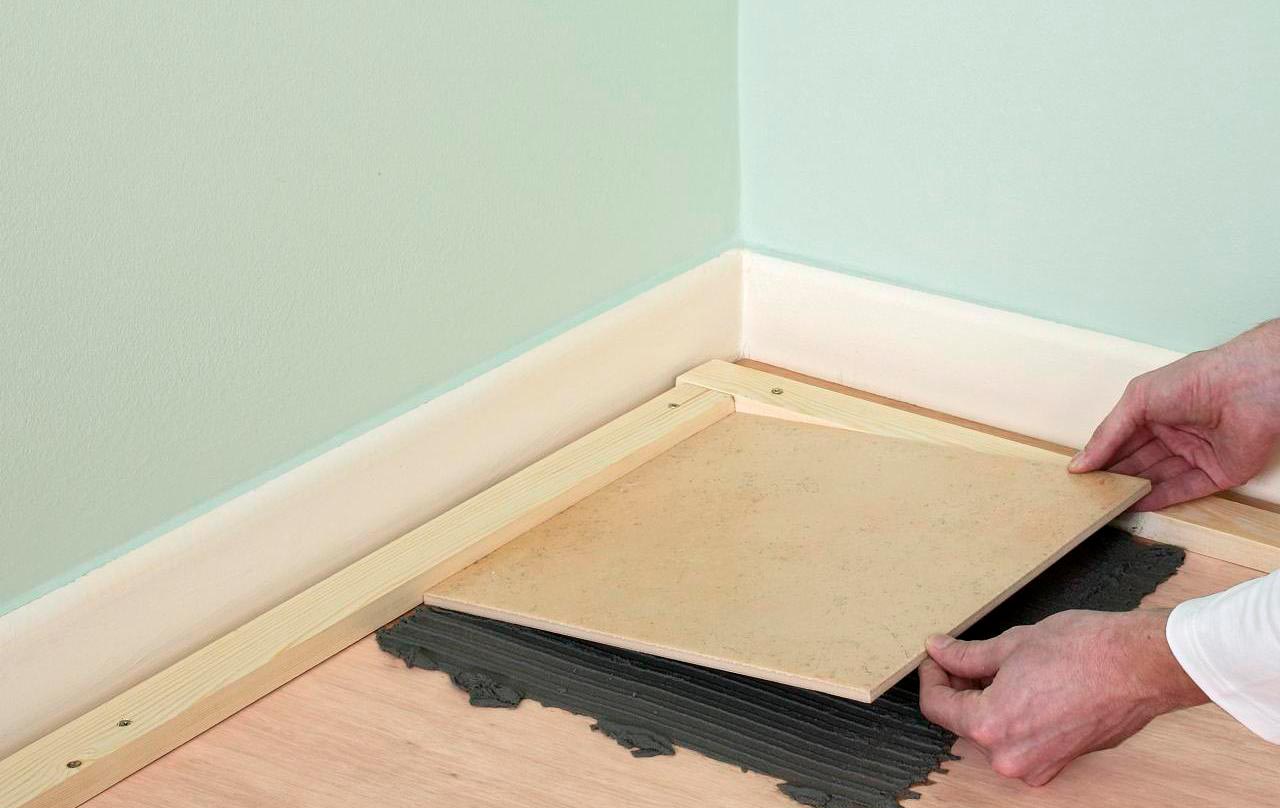 Regla cuadrada - Puede ser necesario en lugares donde sea necesario volver a revisar, mantener un ángulo recto para colocar las baldosas perfectamente rectas. En casos especiales, se usa una regla transportadora especial, donde las baldosas se colocan no en ángulo recto, sino de una manera especial.