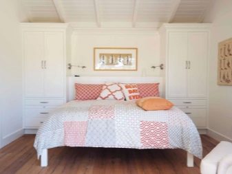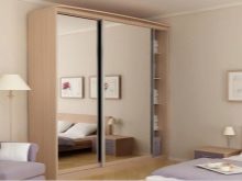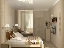 - Alacena. Lo mejor es elegir un guardarropa conveniente para guardar cosas. Se ajustará tanto a la ropa como a los zapatos. La mejor opción para un dormitorio pequeño es un armario con puerta corredera con espejo. Tal instancia hará que la habitación sea más espaciosa.
