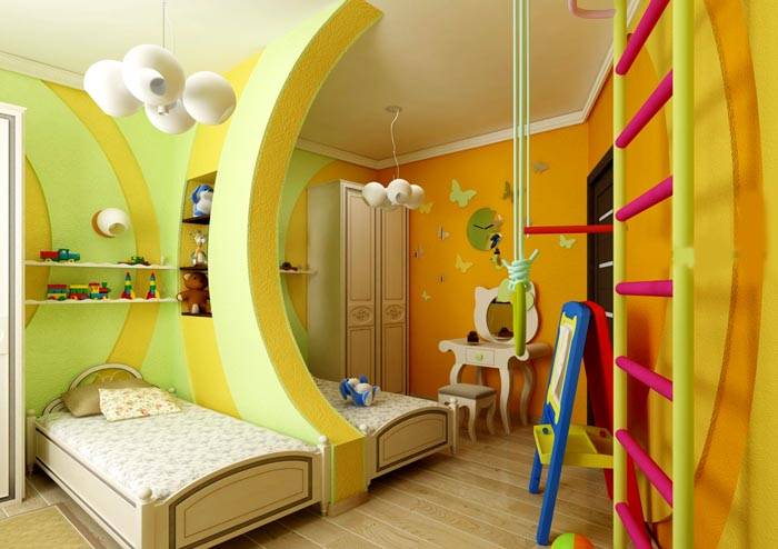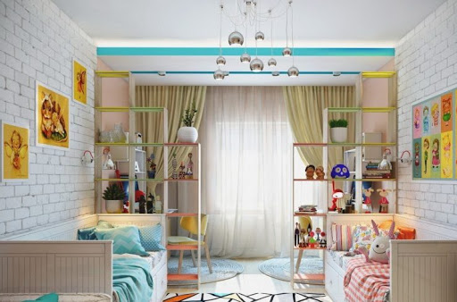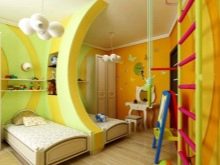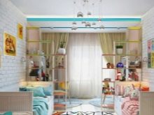 - Habitación infantil con zona de juegos. Una pequeña habitación de 11 metros cuadrados es adecuada para descansar tanto a un niño como a varios. Si el dormitorio es para dos niños, una litera ayudará a ahorrar espacio. Puede separar el rincón para dormir de la sala de juegos usando un estante bajo con juguetes.