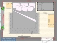 Debe tenerse en cuenta que incluso en un dormitorio pequeño, siempre debe quedar al menos un metro y medio de espacio libre entre los muebles. En este caso, será bastante cómodo moverse por esta habitación.
