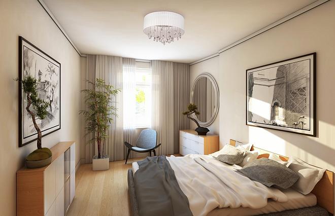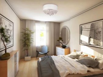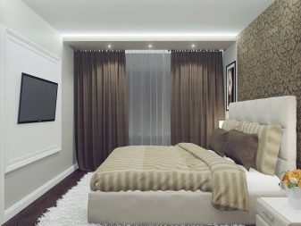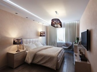 - Dormitorio rectangular. En un dormitorio pequeño clásico, el espacio debe dividirse en dos áreas principales: para dormir y para guardar cosas. El espacio junto a la cama debe estar decorado con colores más claros. Además, no debe usar ninguna decoración innecesaria allí. Tanto los colgadores o estantes abiertos como un armario cerrado son adecuados para guardar cosas.