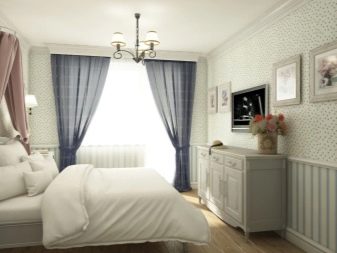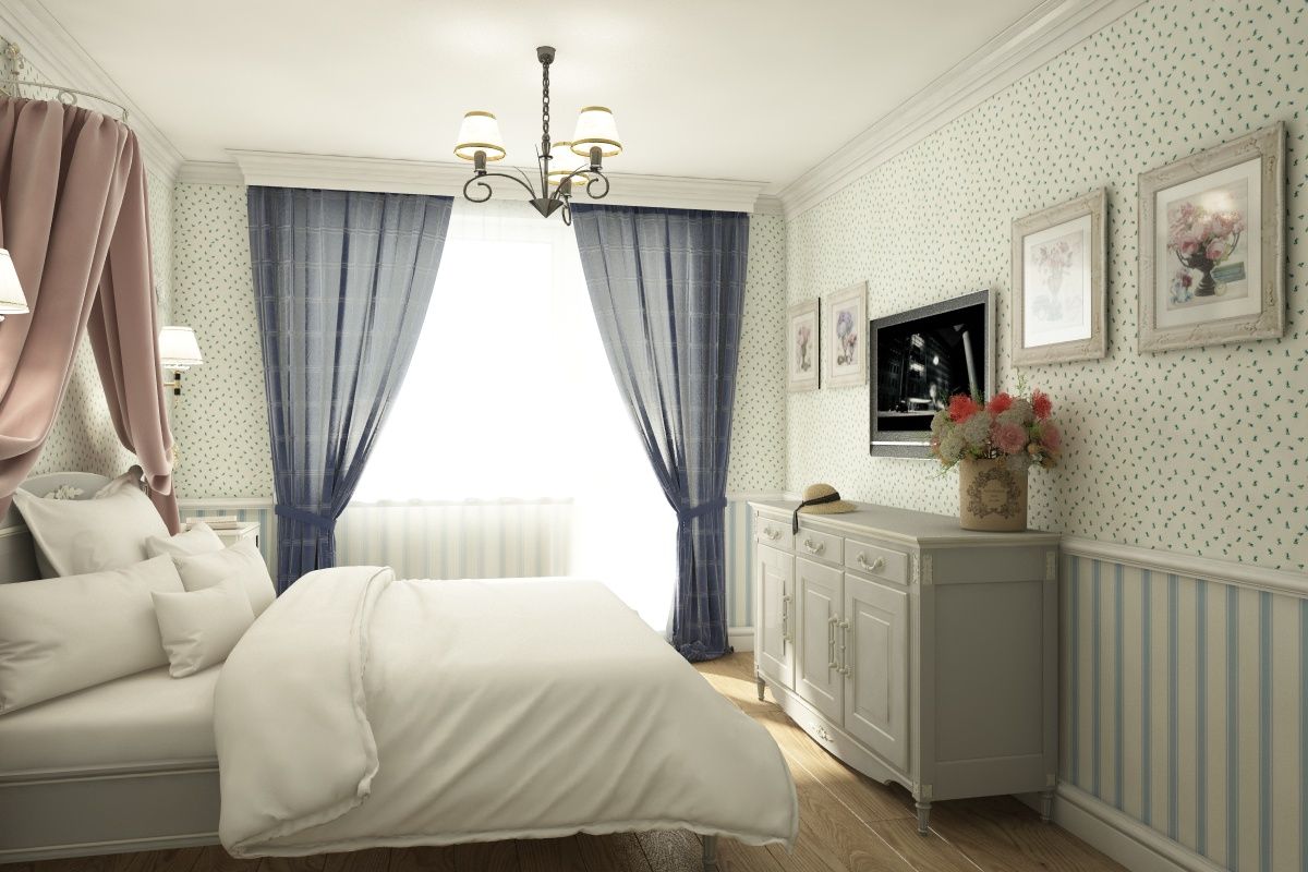 Un pequeño dormitorio de estilo provenzal resulta muy acogedor y romántico. Para decorar una habitación de este tipo, generalmente se usan tonos pastel de verde, azul y rosa. Los productos textiles con un estampado floral se ven hermosos contra el fondo de paredes lisas.