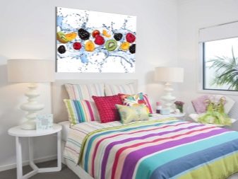 - Decoración luminosa. Como regla general, al decorar una habitación de este tipo, solo se utilizan algunos colores básicos. Está decorado con acentos brillantes. Para decorar la habitación, puede utilizar carteles o pinturas de colores. También se puede decorar con flores frescas en hermosas macetas.