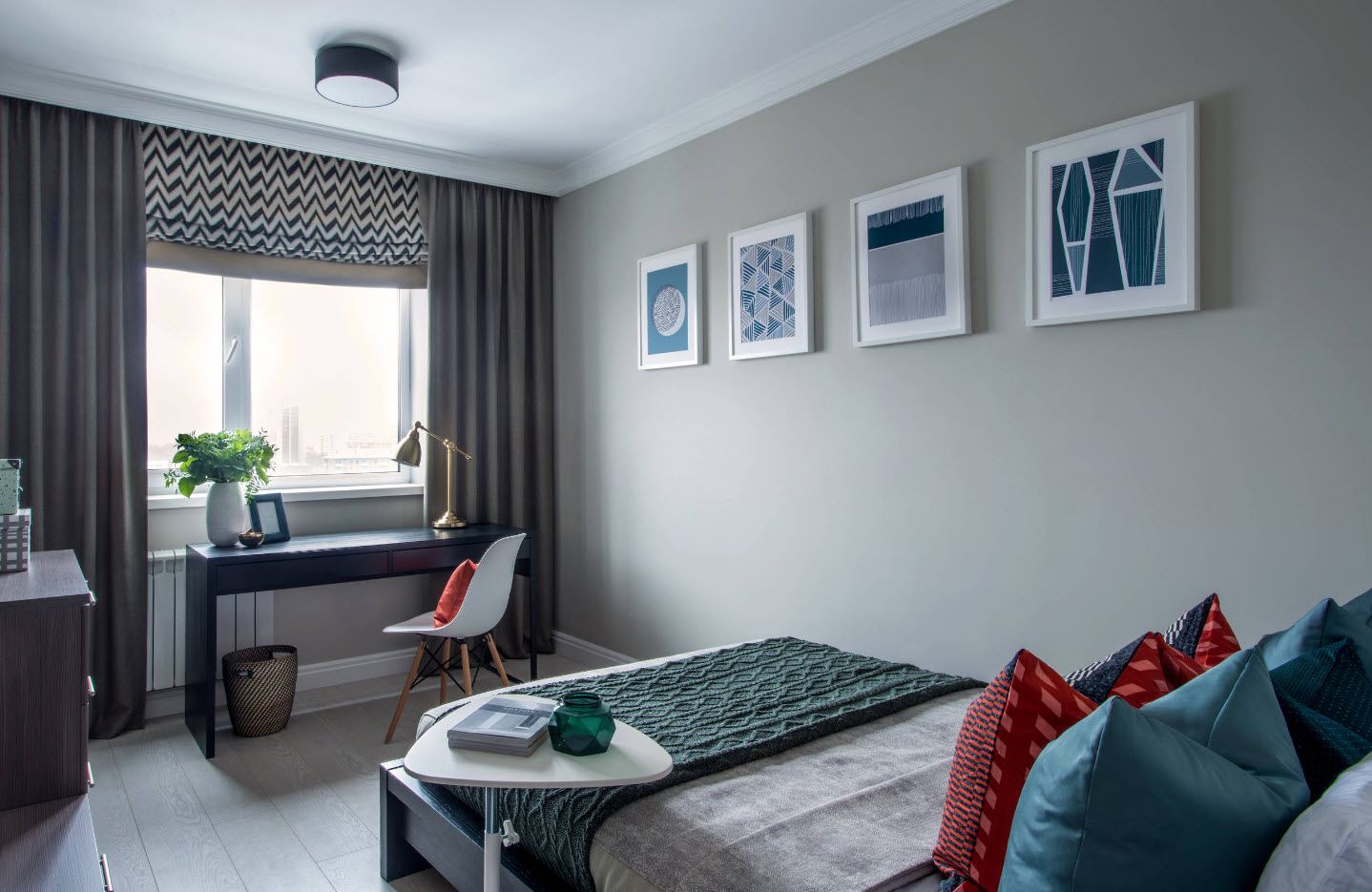 Al decorar un dormitorio pequeño, no se olvide de las preferencias personales. En este caso, la habitación definitivamente resultará original y diferente a otras.