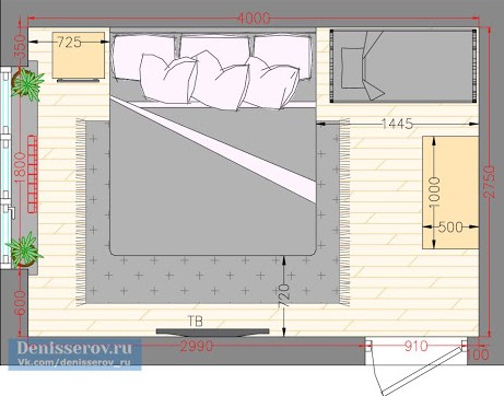 Para la disposición de un dormitorio de 11 m2, generalmente solo se utilizan los muebles más necesarios.