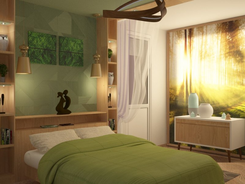 Otra tendencia de los últimos años a la que debes prestar atención es el uso del estilo ecológico. Para decorar el dormitorio, los diseñadores utilizan materiales ecológicos y seguros: madera, textiles, plantas vivas. Esto hace que el dormitorio sea acogedor y hermoso.