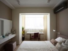 La distribución de la habitación con balcón merece una mención especial. Es conveniente crear un área de trabajo en un balcón o logia, poner una mesa y un sillón, un sofá. Si las particiones se eliminan por completo, se abrirá espacio adicional.