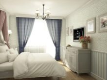 - Provenza. Crea una isla de comodidad llena de pequeñas cosas lindas. Una cama con una manta suave, una otomana y un sillón, una abundancia de textiles delicados y agradables, una alfombra en el piso son atributos del estilo provenzal. Gruesas cortinas de seda separan el espacio del mundo exterior. Predominan los tonos suaves y neutros con sutiles transiciones.