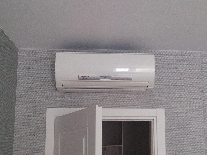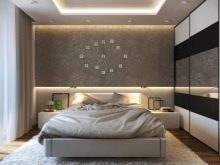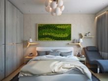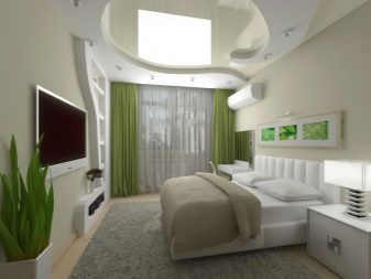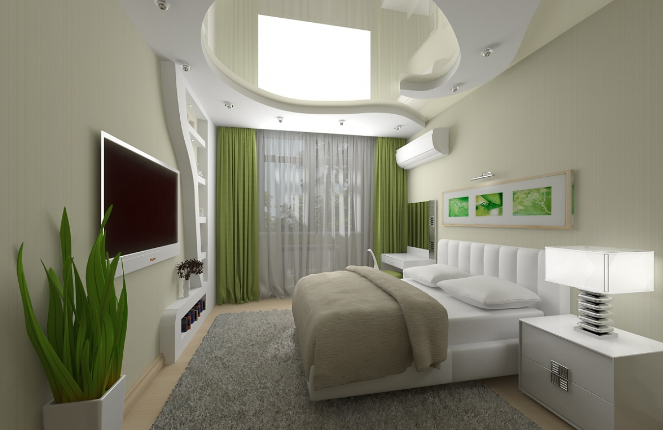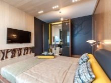 - No puede prescindir de un aire acondicionado. A pesar de que se trata de un dispositivo necesario, es aconsejable no colocarlo en un lugar visible. Para no perturbar la apariencia de la habitación, los diseñadores proponen construir un acondicionador de aire sobre la puerta de entrada. Si la altura del techo es inferior a 2 m 60 cm, se debe buscar adicionalmente el lugar. Al mismo tiempo, el aire acondicionado no está montado frente a la cama para que el aire frío no sople sobre las personas que duermen.