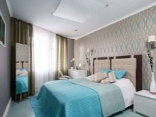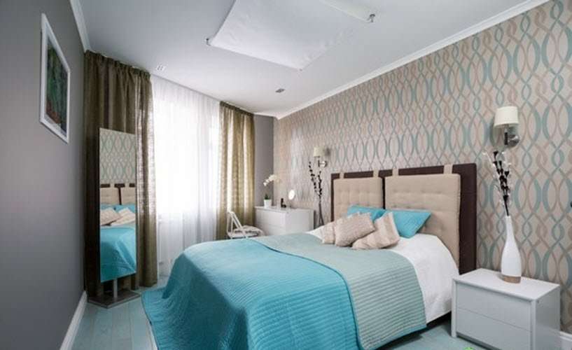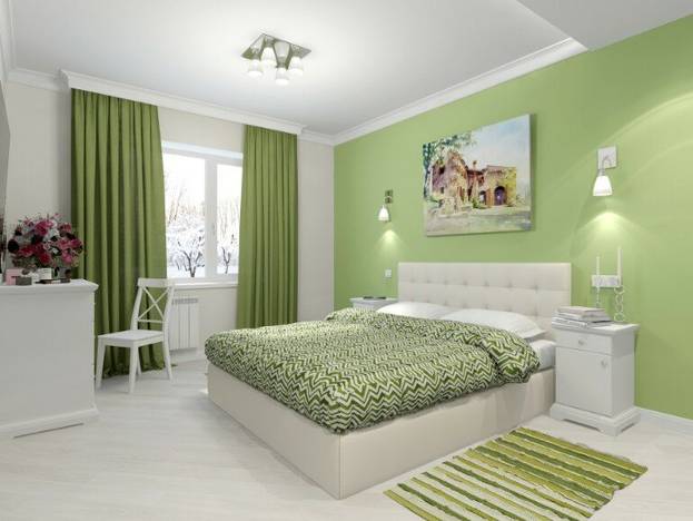 Cuanto más fría es la paleta, más espaciosa se ve la habitación. Azul, rosa y lila harán que el diseño del dormitorio sea solemne. El turquesa y el verde están asociados con la frescura, la alegría y la naturaleza. Los tonos verdes nunca pasan de moda y se consideran versátiles.