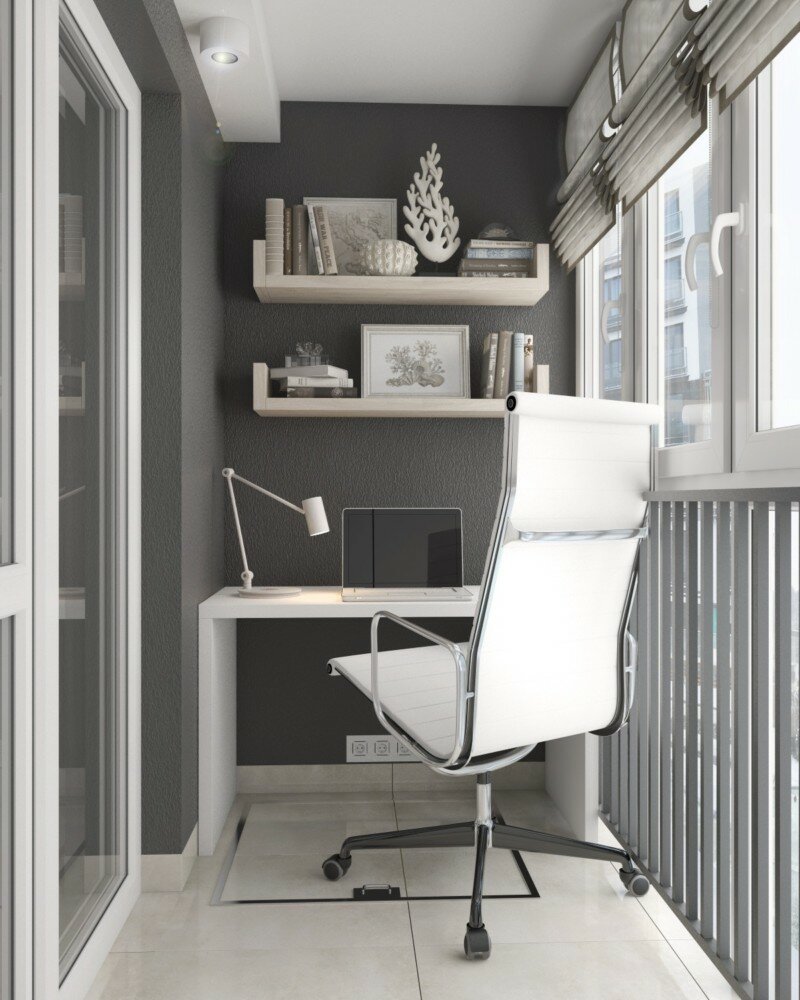 En este caso, será necesario aislar las paredes externas y el piso, fortalecer y aislar las ventanas del balcón. Proporcione iluminación de alta calidad en la oficina con el lugar de trabajo.
