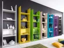 - Precio bajo... En comparación con las paredes modulares, que también son impresionantes en tamaño, las estanterías serán económicas.