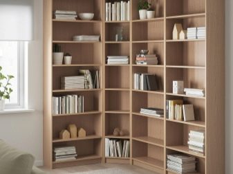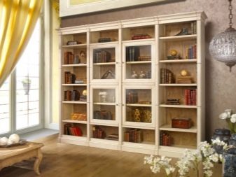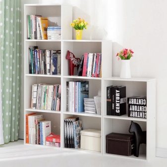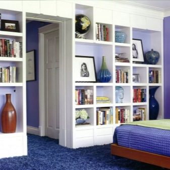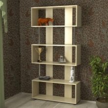 - Librerías o mini-paredes. Una versión más sólida de los muebles, equipada no solo con paredes laterales, sino también con una trasera. Los estantes largos están divididos por particiones, lo que le permite crear secciones separadas para almacenar varias cosas. Algunos modelos están equipados con puertas.