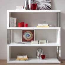 - Diseño de estanterías. Aquí debe prestar atención al tamaño y la cantidad de estantes. Cuantas más haya, más cosas puede encajar la estructura. Si planea almacenar libros en el estante, puede comprar un modelo con una profundidad de estante de 25-30 cm.