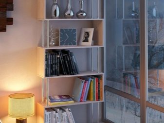 Hay otras opciones para estanterías. En las tiendas puedes encontrar diseños con espejo, modelos estrechos. Dependiendo del tipo de suelo o mueble colgante, será posible hacer que el dormitorio sea más atractivo y acogedor.