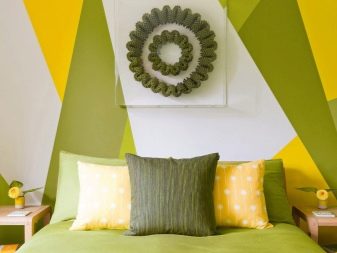 Cualquier tono de oliva es adecuado para decorar las paredes del dormitorio: de claro a oscuro. En este caso, una combinación de pintura y papel tapiz se verá muy bien. Se aconseja a los diseñadores que experimenten con la decoración de paredes. Por lo tanto, puede pintar una parte de la habitación en un tono oliva oscuro y decorar el lado opuesto con un color claro. Este contraste llamará la atención y hará que la habitación se sienta acogedora.
