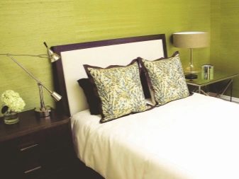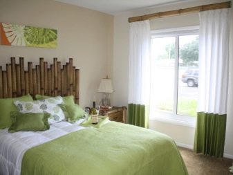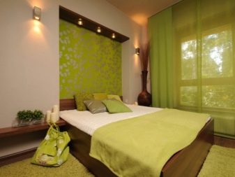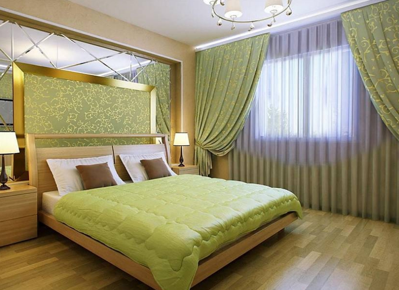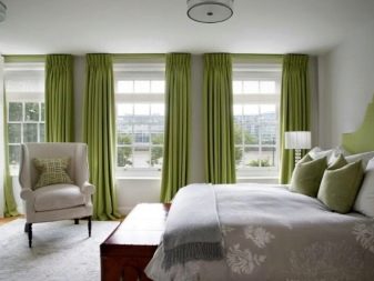 Si el diseño del dormitorio resultó ser tranquilo y desea revivirlo un poco, entonces, además de las cortinas de colores, puede agregar almohadas y colchas brillantes. Los tonos azules y amarillos se usan a menudo junto con el olivo. El verde claro también es adecuado si el color principal del acabado es oscuro.