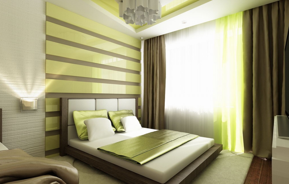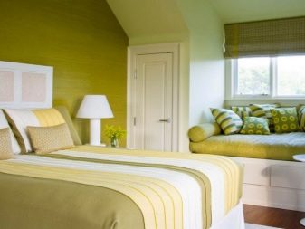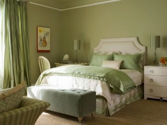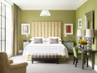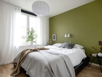 Mucho depende de cómo el diseñador planee usar el olivo para decorar el dormitorio. La combinación de colores final está determinada por el proyecto, que tiene en cuenta las características de la habitación y la disposición de los muebles.