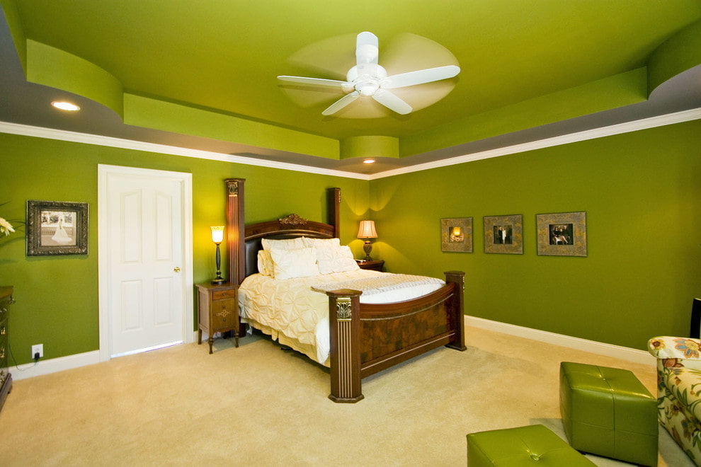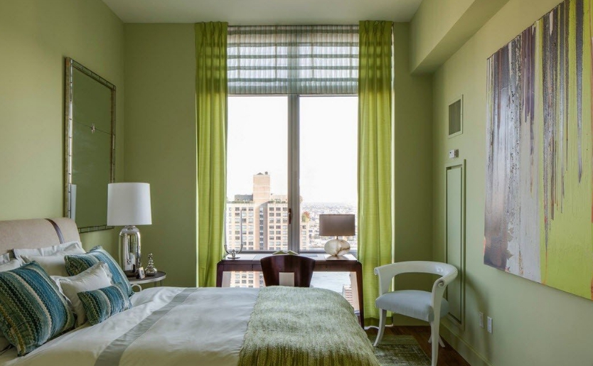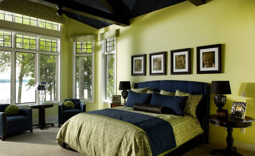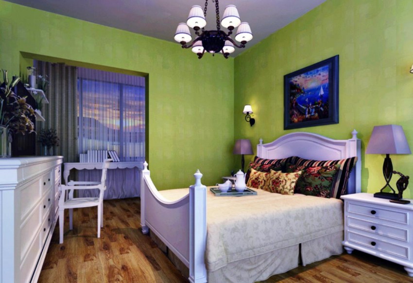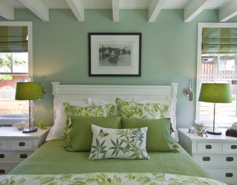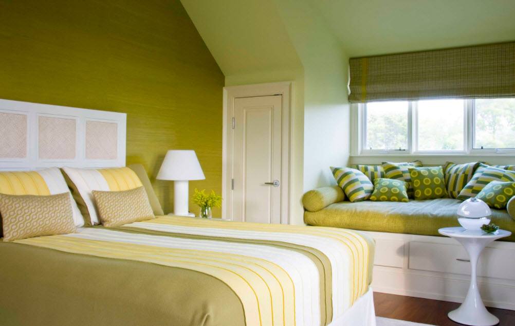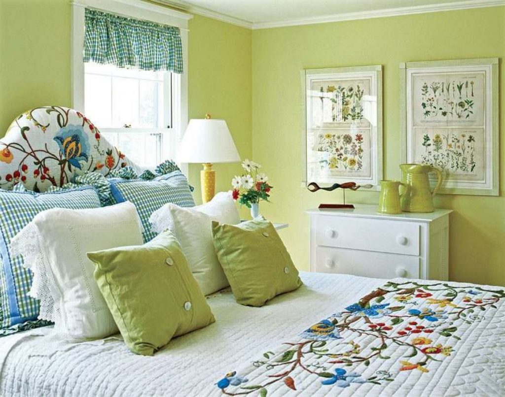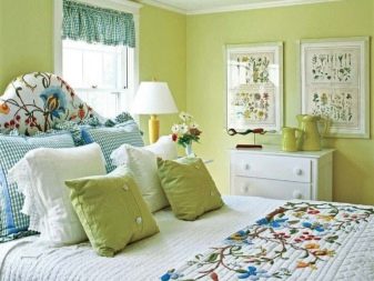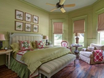 Los dormitorios suelen estar decorados en colores oliva o pistacho. Las principales características del esquema de color: