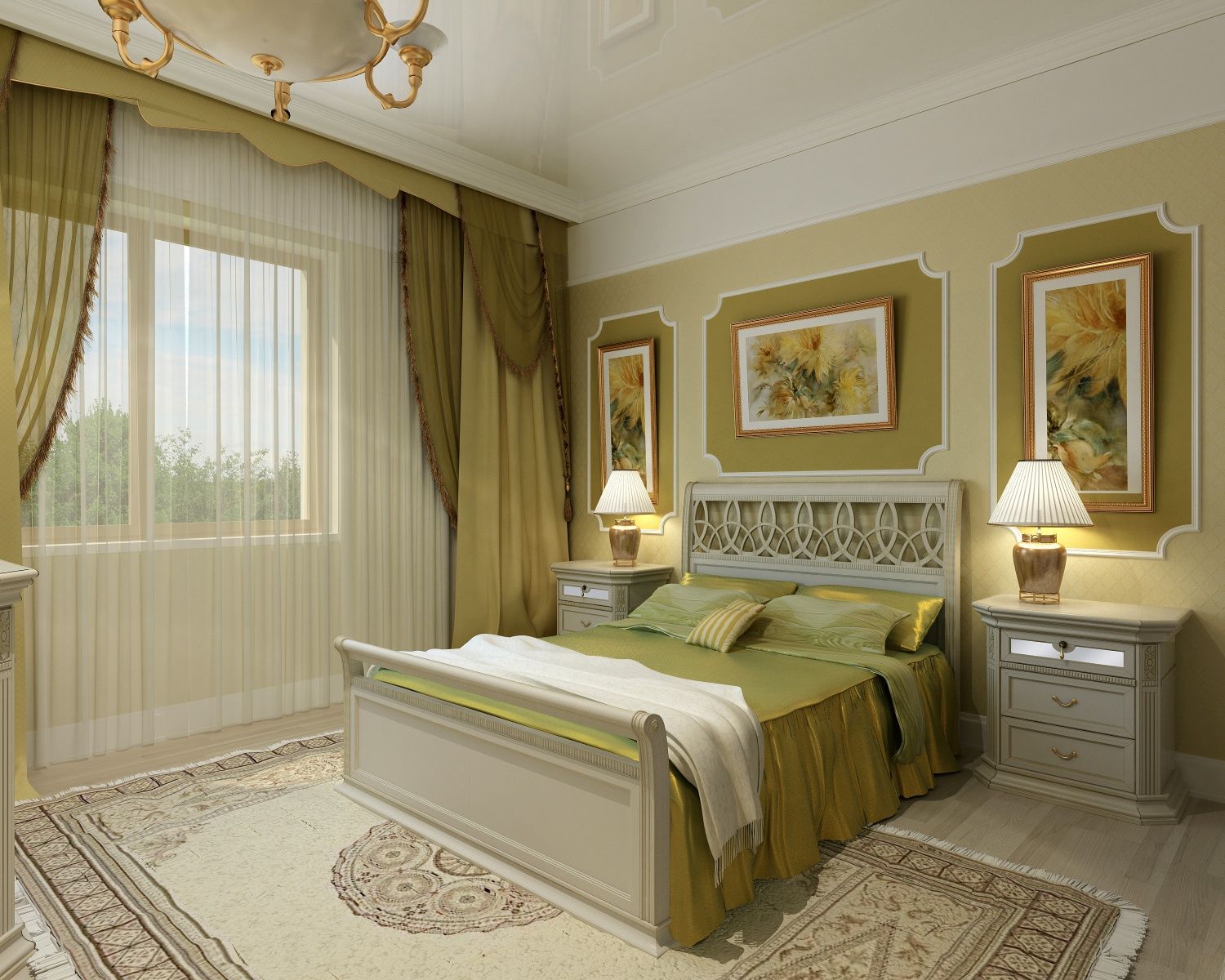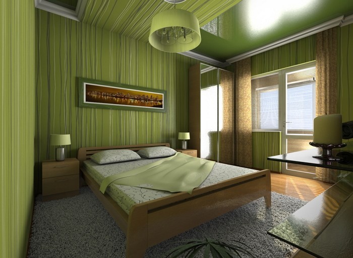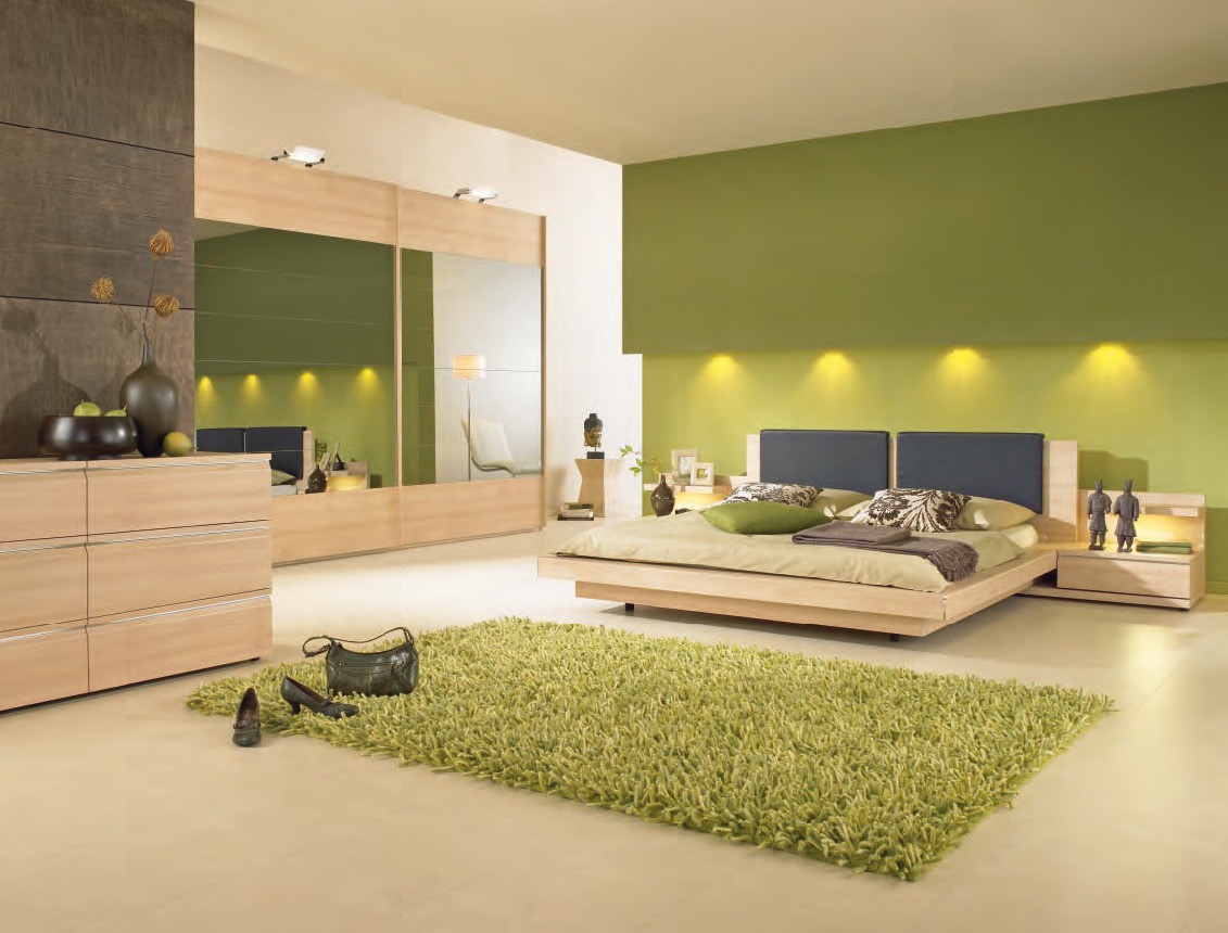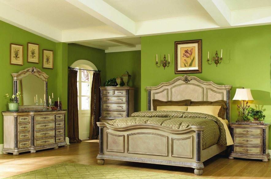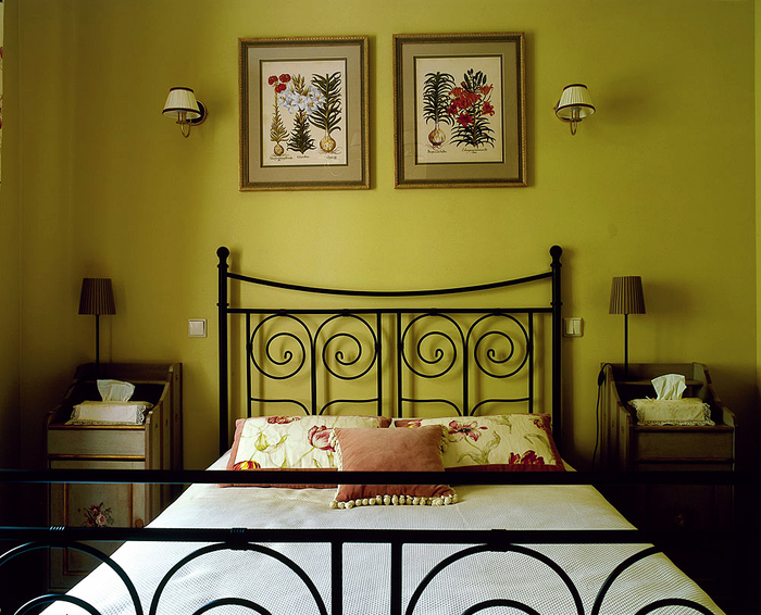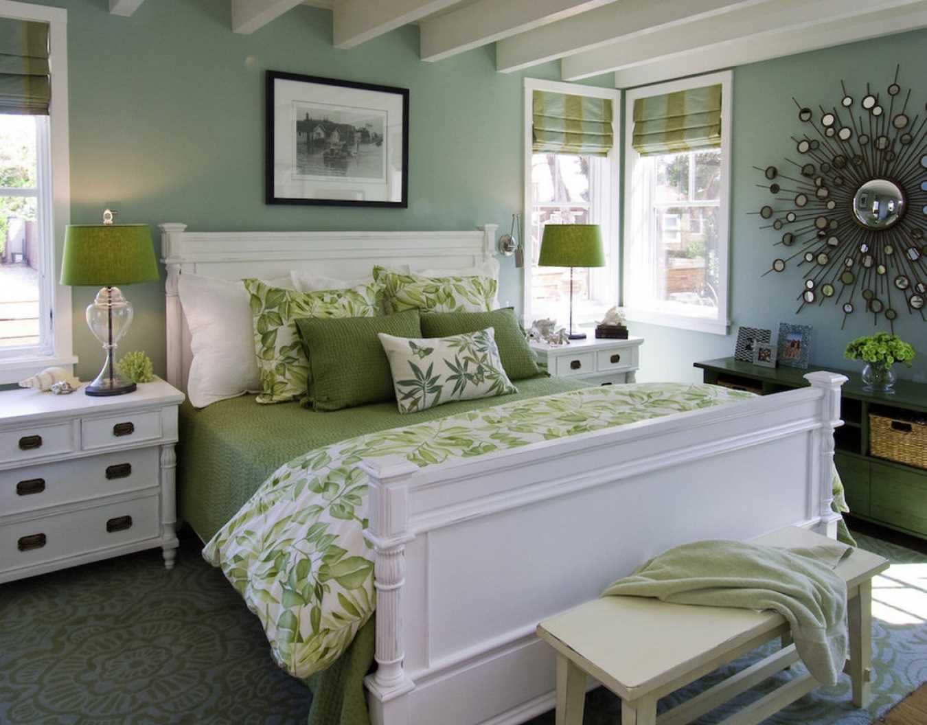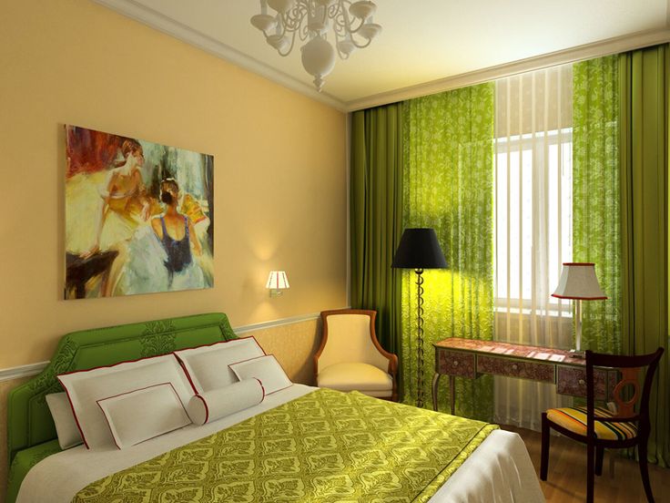 Los dormitorios suelen estar decorados en colores oliva o pistacho. Las principales características del esquema de color: