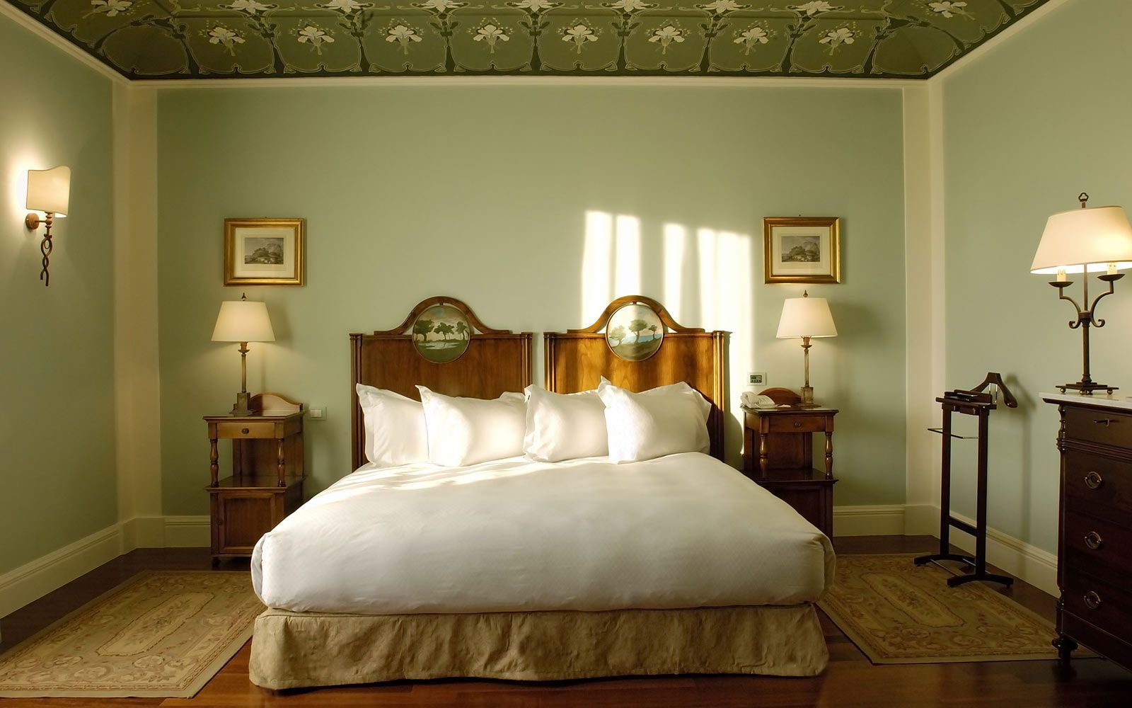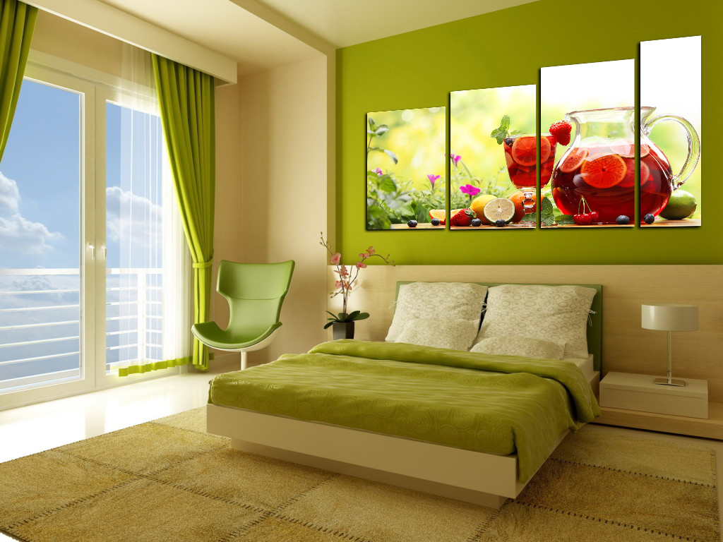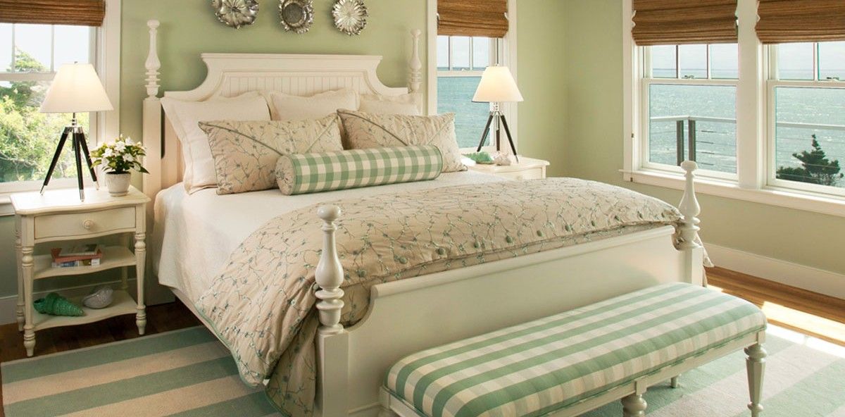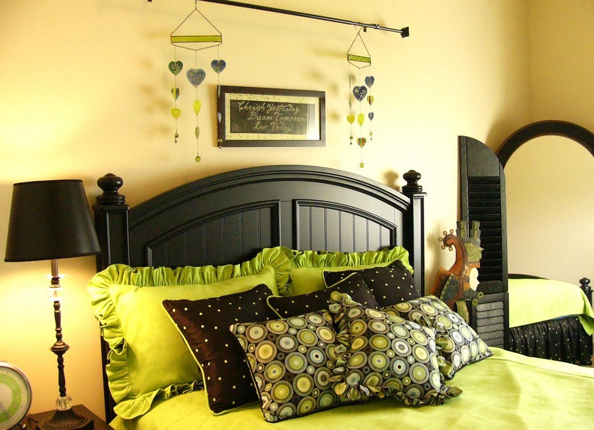 Los dormitorios suelen estar decorados en colores oliva o pistacho. Las principales características del esquema de color: