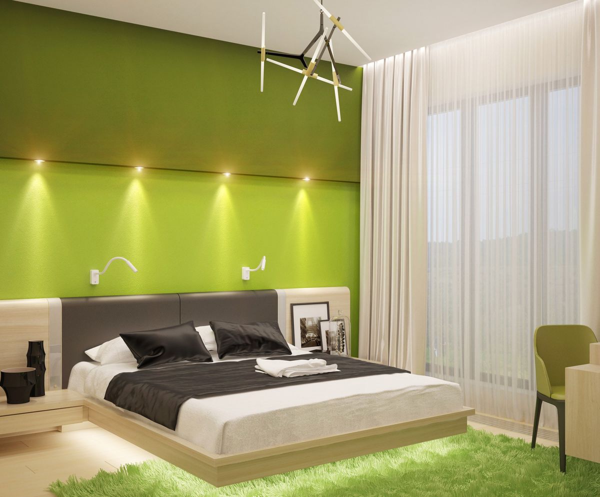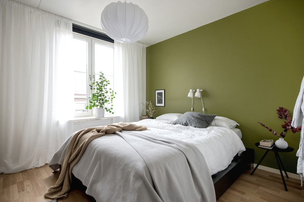 La luz es algo que también hay que tener en cuenta a la hora de decorar un dormitorio. Olive tiene la capacidad de absorber la luz, por lo que debe cuidar las soluciones de iluminación en la habitación. Además de la luz natural, vale la pena considerar: