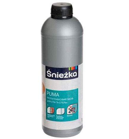 - Agente antifúngico "Snow Puma"eficaz en techos y paredes revestidas con yeso, soluciones adhesivas, pinturas en emulsión. Se utiliza con éxito para el procesamiento interno y externo de estructuras. Disponible como spray.