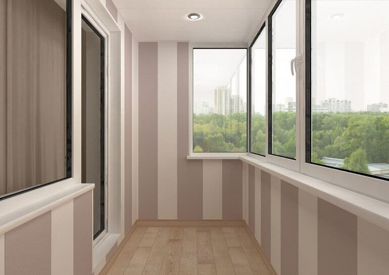 Si decide pegar papel tapiz en paneles de yeso, entonces se irá menos pegamento a la superficie imprimada. Si en la línea de meta decide pintar el balcón, entonces debe hacerlo con una emulsión de agua en varias capas. El acabado se puede realizar en forma de azulejos o mosaicos.