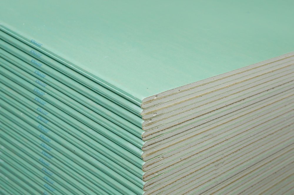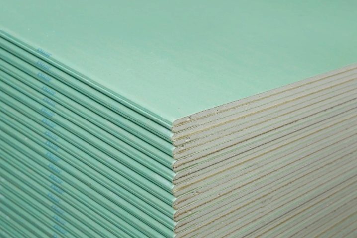 Resistente a la humedad GKLV. La resistencia a la humedad de esta opción se debe a la presencia de componentes fungicidas e hidrófobos en la composición. Donde hay mucha humedad, se recomienda esta opción para la decoración de interiores.Busque láminas de verde o turquesa, que son colores típicos para paneles de yeso resistentes a la humedad.