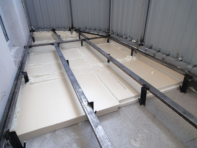 Para la regla de esta manera, es necesario cubrir los pisos con un agente antifúngico, cubrir con una capa aislante. Luego, el soldador conecta toda la estructura a partir de elementos individuales. Además, no se excluye la opción de adquirir una estructura terminada de acuerdo con el tamaño de una logia.