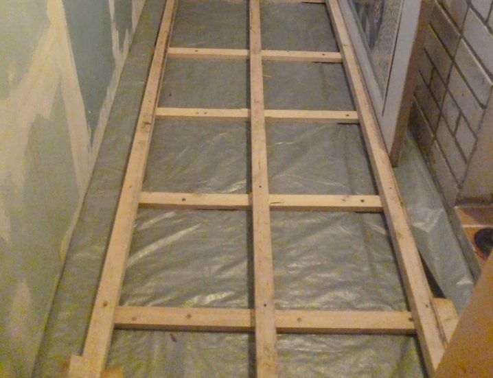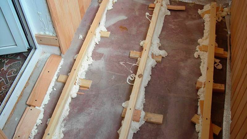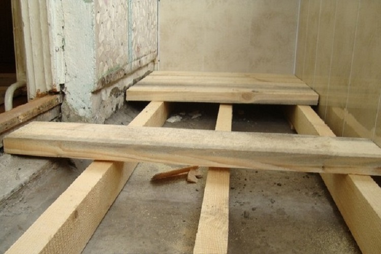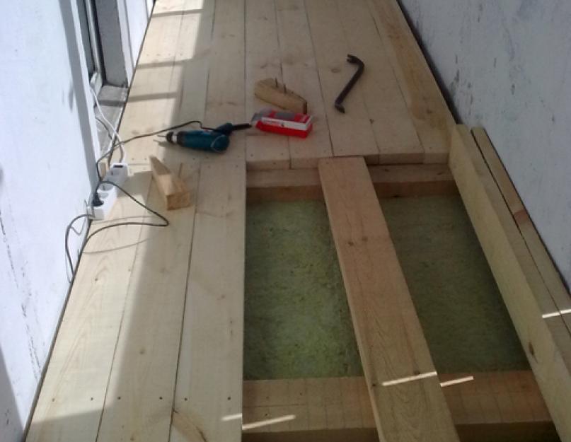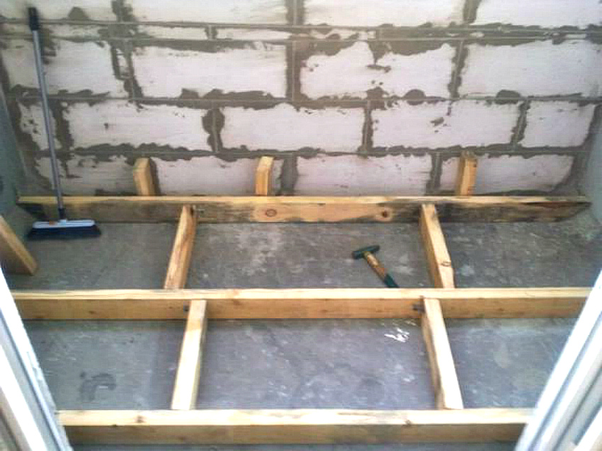 Otra forma de elevar el piso en la logia es una regla en los troncos. Esta opción de diseño es un material ligero, ecológico y duradero.... El piso de madera se puede elevar al nivel deseado sin restricciones. Para realizar trabajos de construcción, debe conocer la cantidad exacta de madera, para la cual se realizan las mediciones de la habitación y los cálculos matemáticos. Es preferible dar la opción a favor de una barra, bloque o madera. Para comenzar, debe sacar las cosas innecesarias del balcón, barrer los escombros y cubrir las grietas existentes con masilla. Usando un nivel de burbuja, marque la altura deseada, verifique el ángulo de inclinación de la base y encuentre su punto más alto, si lo hay.