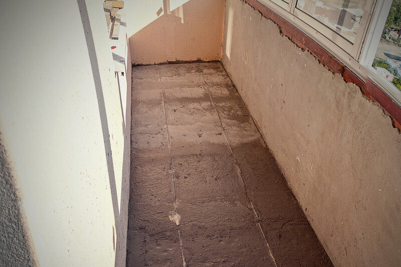 - La calidad neutra de este método es el vertido durante las estaciones cálidas y secas. De lo contrario, tendrá que posponer la reparación del balcón hasta mejores tiempos.