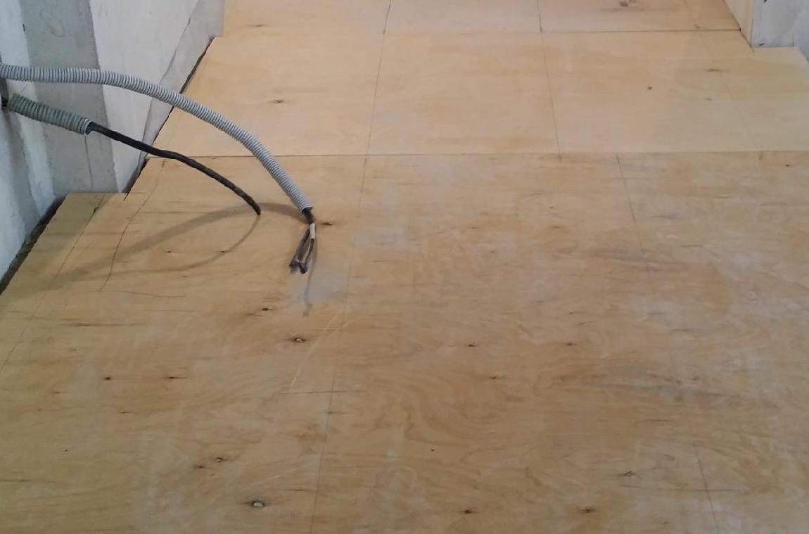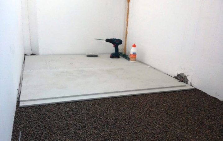 Se coloca un material nivelador sobre la arcilla expandida, por ejemplo, una hoja de paneles de yeso, madera contrachapada, aglomerado.