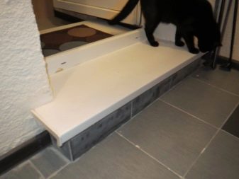 Si la diferencia entre el piso y la entrada es alta, el uso de ladrillos será prudente. La altura no es menor que el tamaño del ladrillo. Y también se aplicará una capa de mezcla niveladora al ladrillo, y encima también habrá baldosas para revestimiento. Por lo tanto, la altura de la tuerca se puede calcular de antemano. Por supuesto, no debería bloquear la puerta.