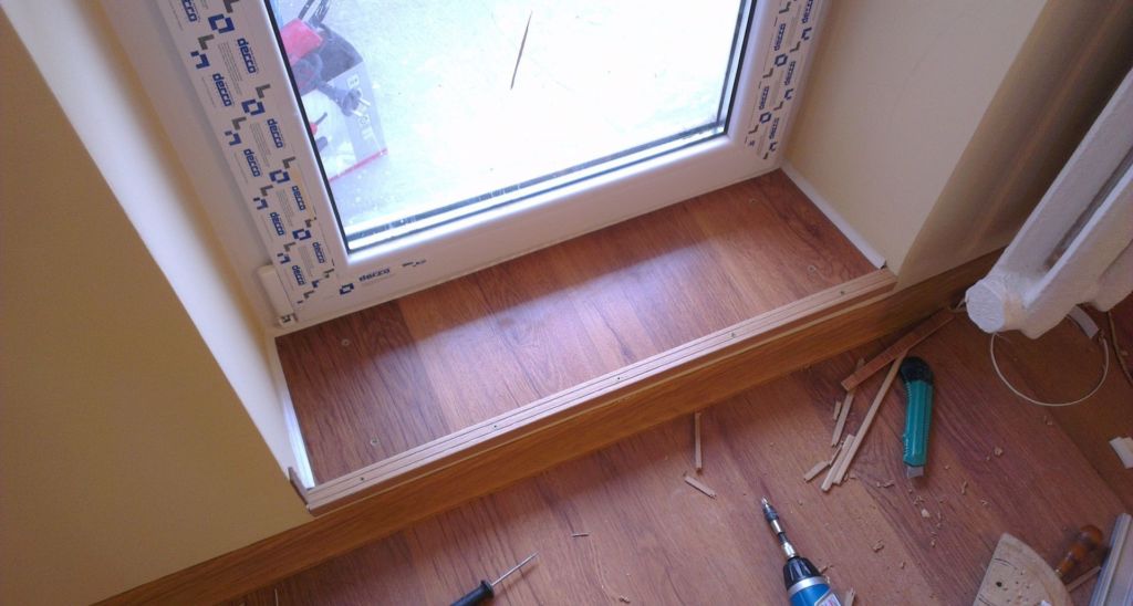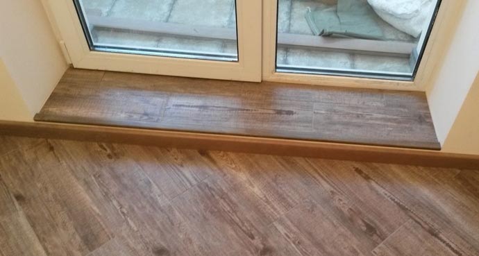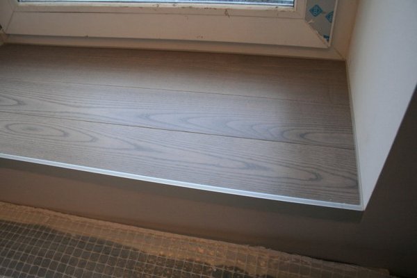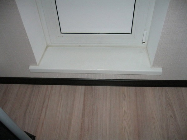 - Linóleo. Se llama la opción de acabado más económica, y si el piso está cubierto con linóleo, el mismo alféizar será una continuación lógica. Desafortunadamente, si el linóleo es delgado o de baja calidad, no es difícil rayarlo o rasgarlo.