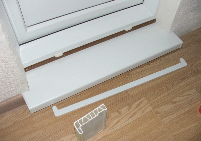- El plastico. Este diseño se debe a la aparición de sistemas de entrada de metal y plástico. En este caso, el material del umbral se sincronizará con el material de la puerta del balcón. El piso de plástico se puede llamar práctico, es fácil de mantener en orden, es bastante fácil limpiarlo con un paño húmedo. Pero en términos de resistencia al impacto, este material es algo vulnerable; se necesita precisión en el manejo.