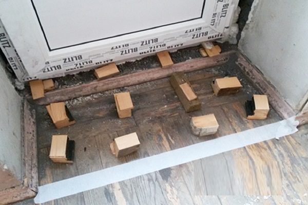 Es hora de pegar el umbral. Dado que la espuma es inherente a expandirse, después de la instalación de la estructura, la superficie debe cargarse.