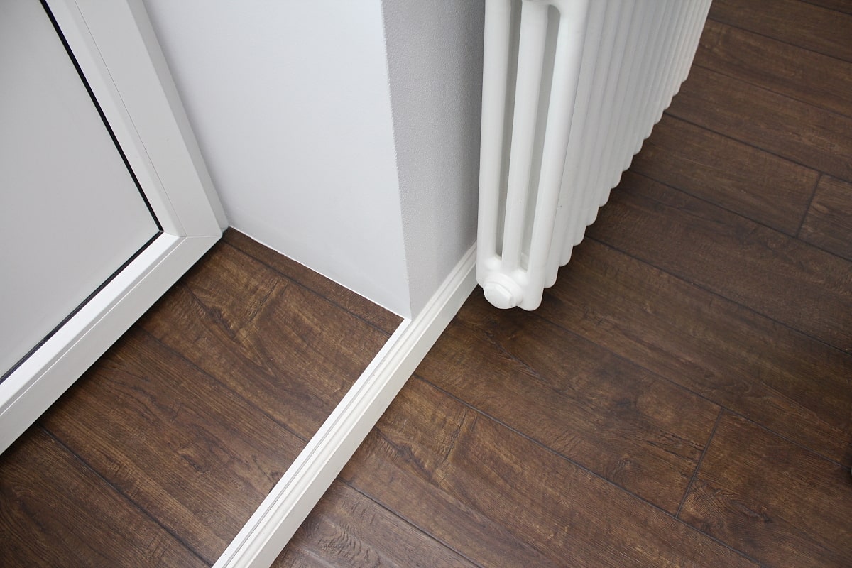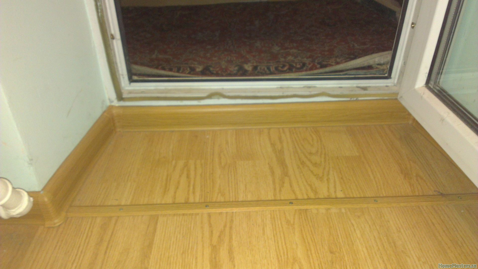 - Laminado. El análogo más popular de la madera natural, en el que la posibilidad de dañar la capa laminada se puede distinguir de las desventajas. Si esto sucede, el material perderá sus principales propiedades. Pero a menudo deciden decorar la entrada al balcón con laminado, lo que significa que durante la operación el material es predecible y rara vez decepciona.