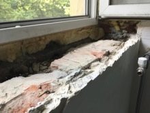 - El viejo alféizar de la ventana deberá ser desmantelado. El desmantelamiento se puede realizar de diferentes maneras, y la elección específica depende del tipo de fijación de la estructura anterior. Si se desmonta un alféizar instalado en la época soviética, tendrá que lidiar con sacar clavos grandes.