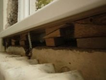 Otra situación se relaciona con la fijación de la placa del umbral de la ventana, si hay un espacio en lugar de la base. En este caso, tendrá que hacer paradas para el alféizar de la ventana con sus propias manos.