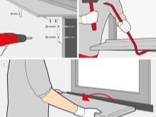 La instalación, en la que el alféizar de la ventana de PVC está literalmente pegado y asegurado con espuma especial, es el método más común. El procedimiento en sí se lleva a cabo muy rápidamente. El procedimiento es especialmente relevante para estructuras de pequeño ancho, que sobresalen un poco más allá del espacio de la pared. Sin embargo, la instalación con esta herramienta no siempre es adecuada.