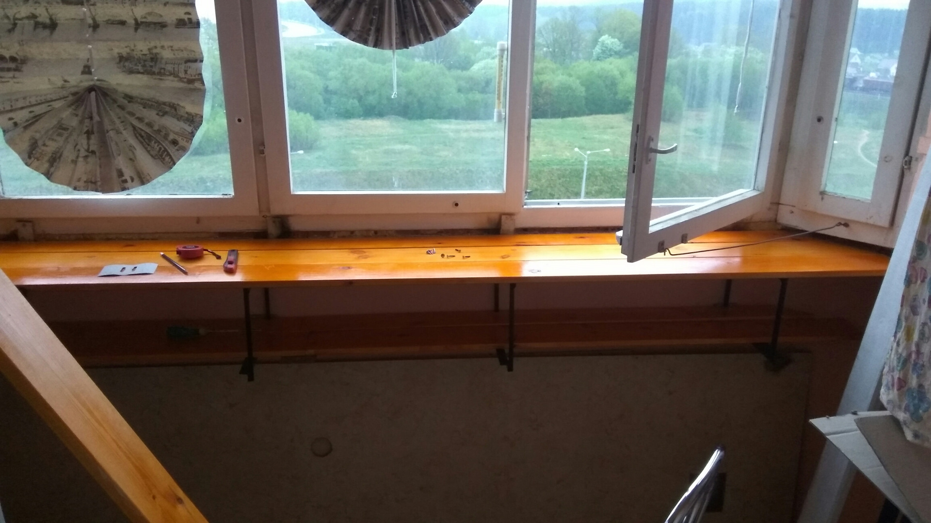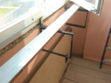 - Si en el futuro se ubicará un pequeño jardín en el alféizar de la ventana o se usará como barra de bar, vale la pena colocar los soportes de una manera especial. Deben tener un paso de 50 centímetros, lo que le dará a la estructura una confiabilidad adicional.
