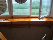 - El antiguo acristalamiento debe ser reemplazado por uno mejor. Las opciones están disponibles en madera, metal-plástico o aluminio. Después de eso, puede comenzar a montar el alféizar de la ventana.