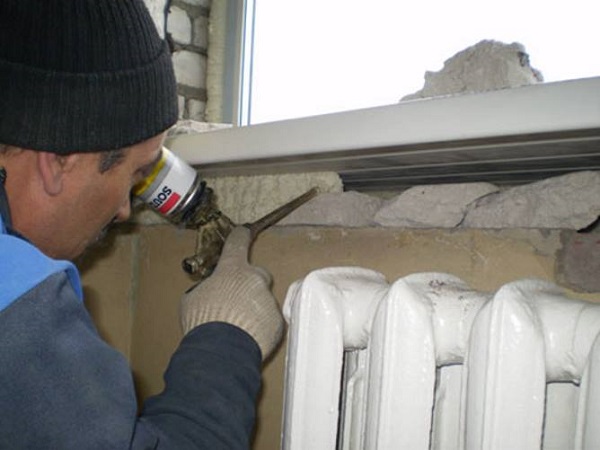 - Todas las grietas y astillas, así como los espacios entre la ventana y la pared, deben rellenarse con espuma de poliuretano. Si esto no se hace a tiempo, la ventana dejará entrar aire frío y siempre estará frío en la habitación. Por lo tanto, no vale la pena ahorrar espuma en esta etapa.